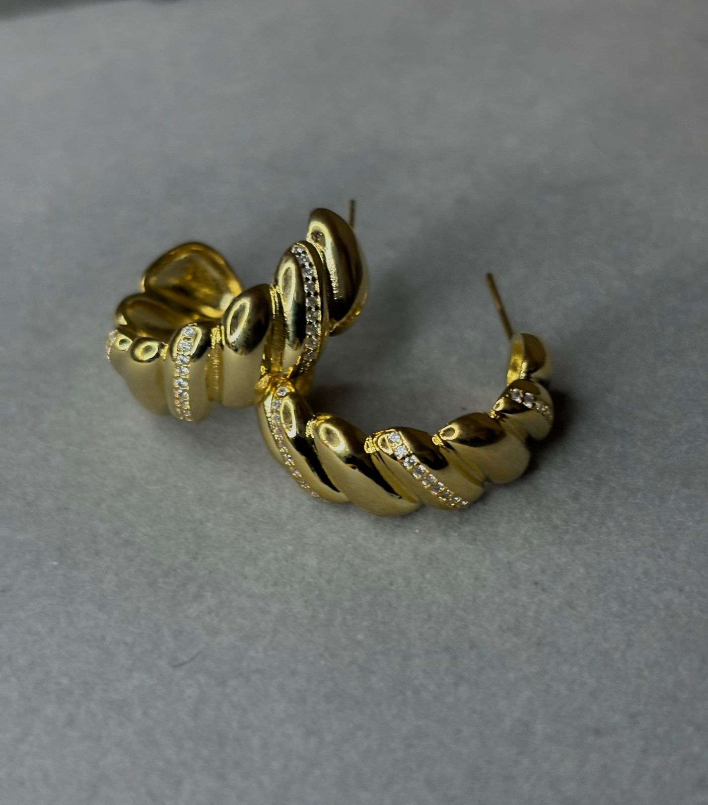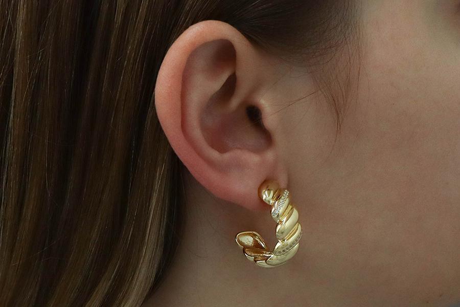Argola em espiral folheada a ouro com zircônia
