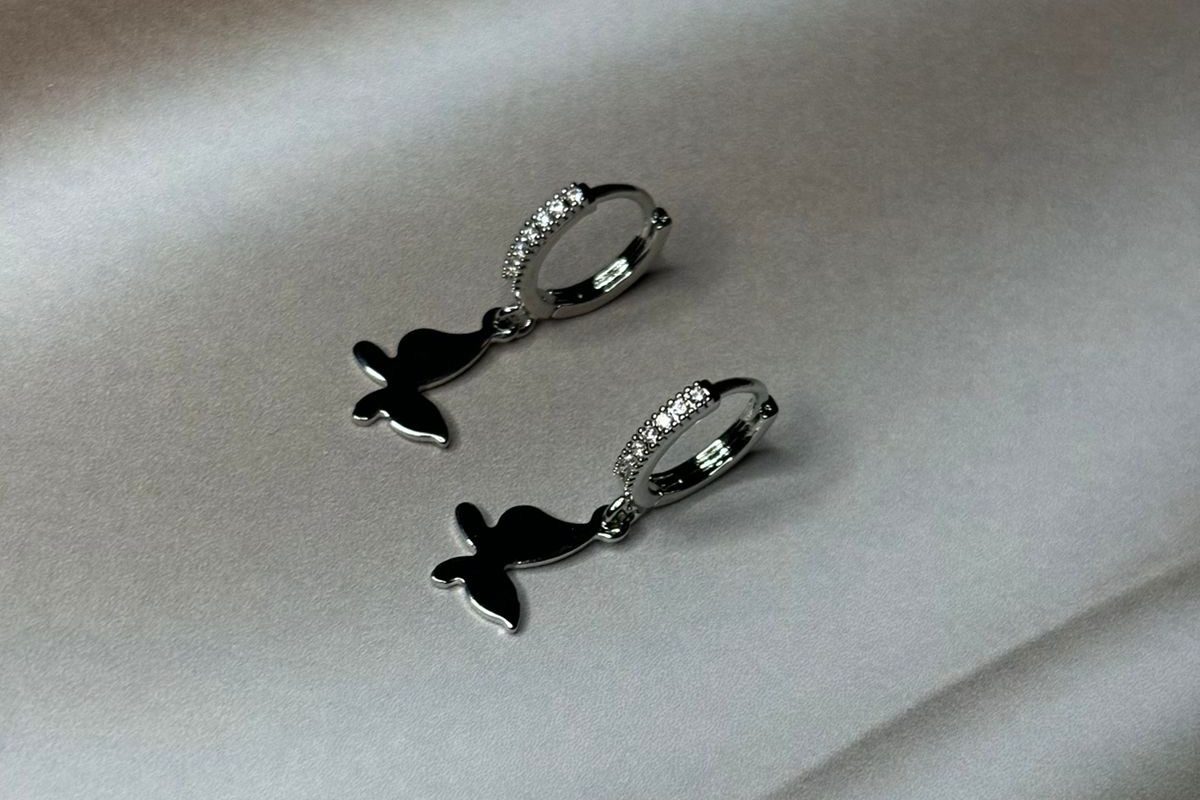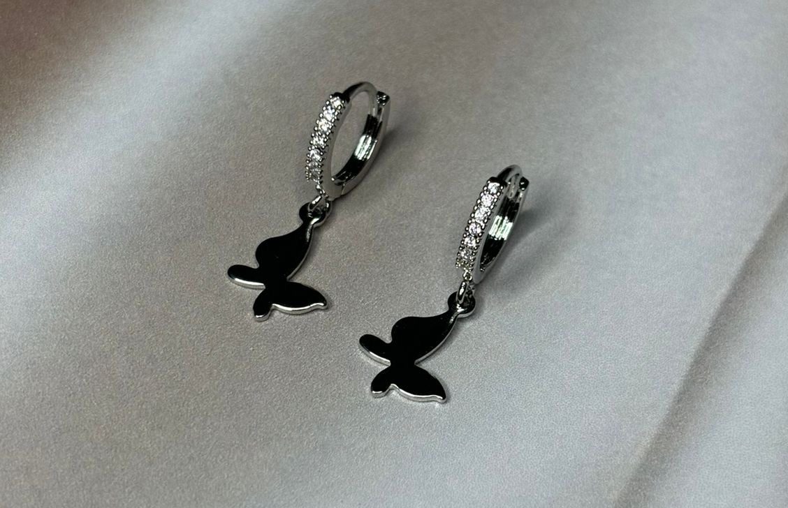 Brinco prateado com borboleta