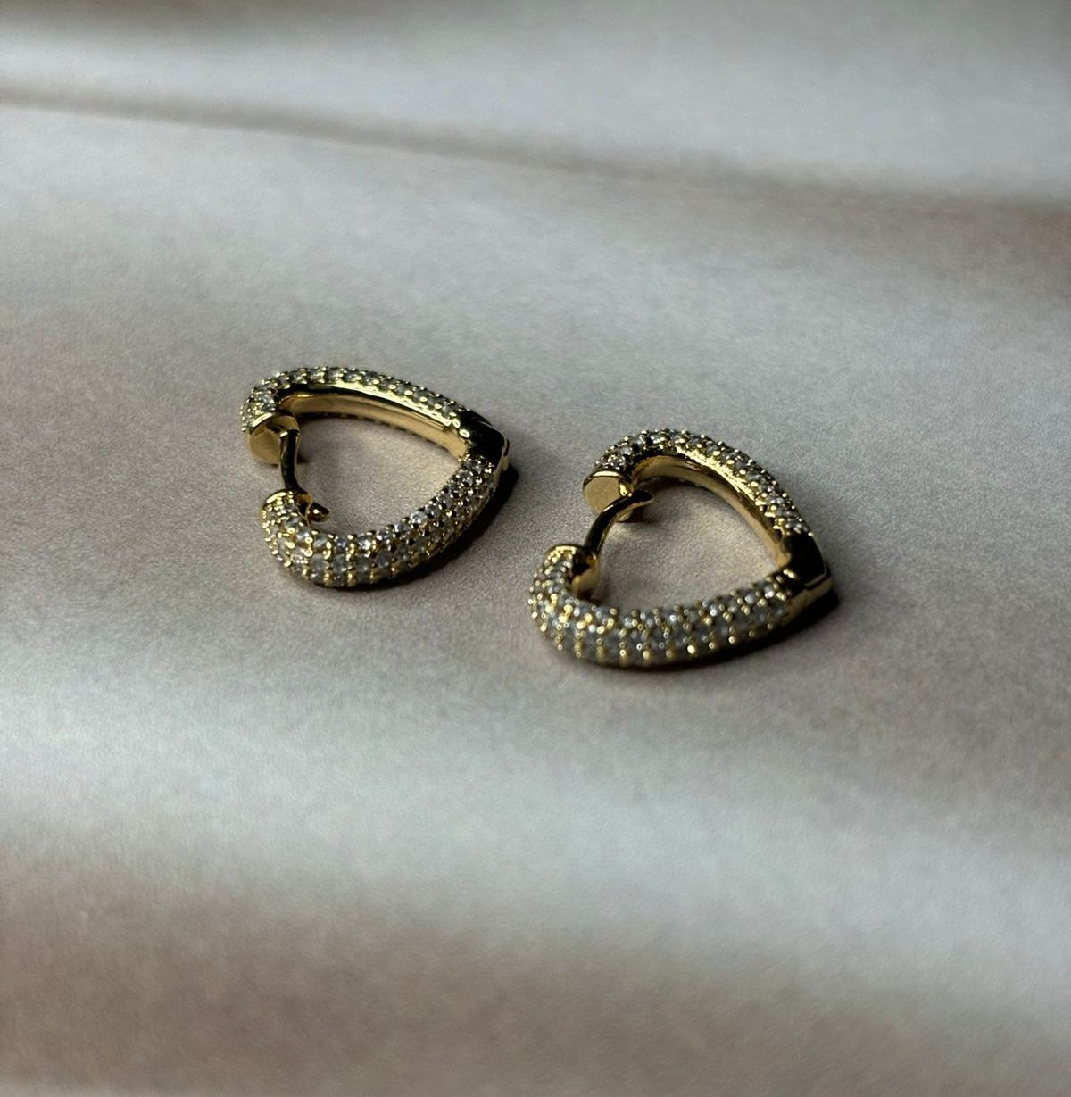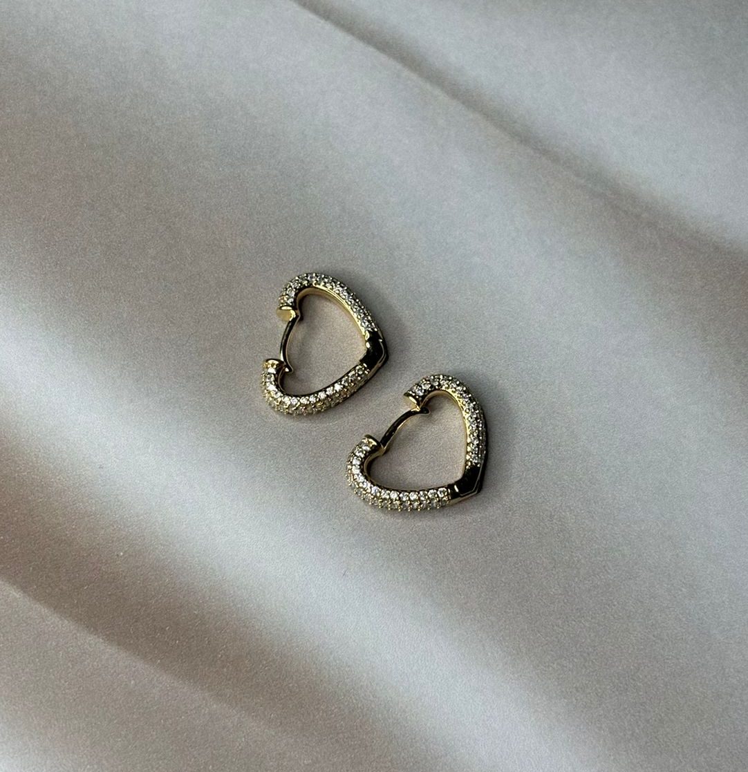 Brinco coração folheado a ouro com pedras de zircônia